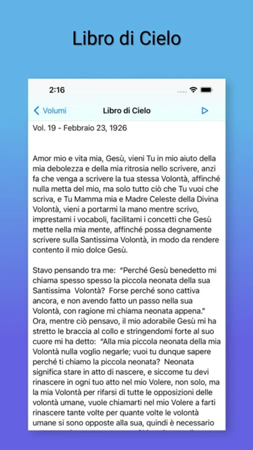 Questa app ti aiuterà a imparare tutto sul Dono di Vivere nella Divina Volontà della Serva di Dio, Luisa Piccarreta. È stato creato dalla Fundación Hijos de la Luz, Inc., una Fondazione senza fini di lucro che promuove la Causa di Beatificazione di Luisa e altri progetti per proclamare le verità del Regno della Divina Volontà, affinché il Regno venga e la Divina Volontà sia fatta in terra come in Cielo. Per ogni acquisto di questa app, la Fundación Hijos de la Luz, Inc., regalerà un libro de "Le Ore della Passione" o "La Regina del Cielo nel Regno della Divina Volontà" a un sacerdote o a una suora . Il tuo contributo fa conoscere il Regno della Divina Volontà. Grazie per il tuo contributo, Fiat!