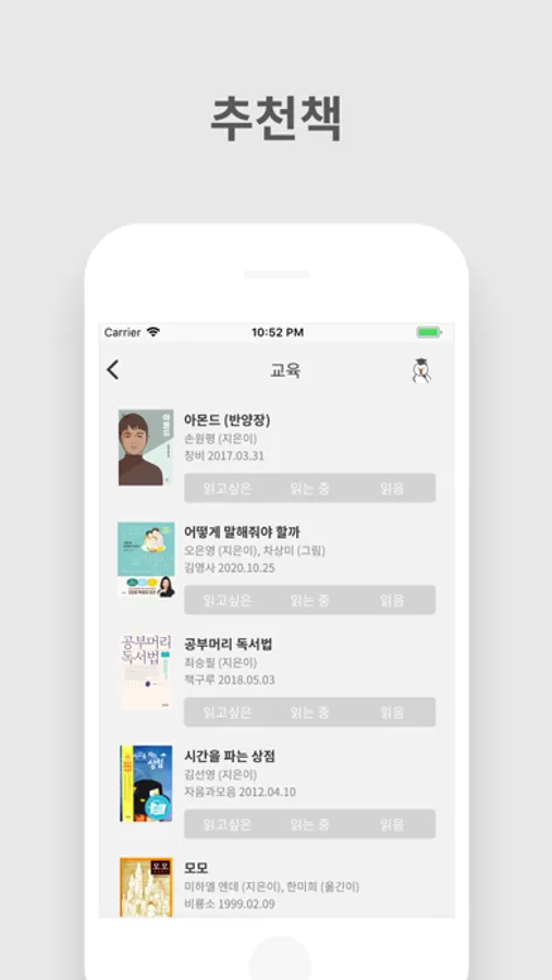 도서를 신청하고, 읽은 책을 기록할 수 있습니다.
