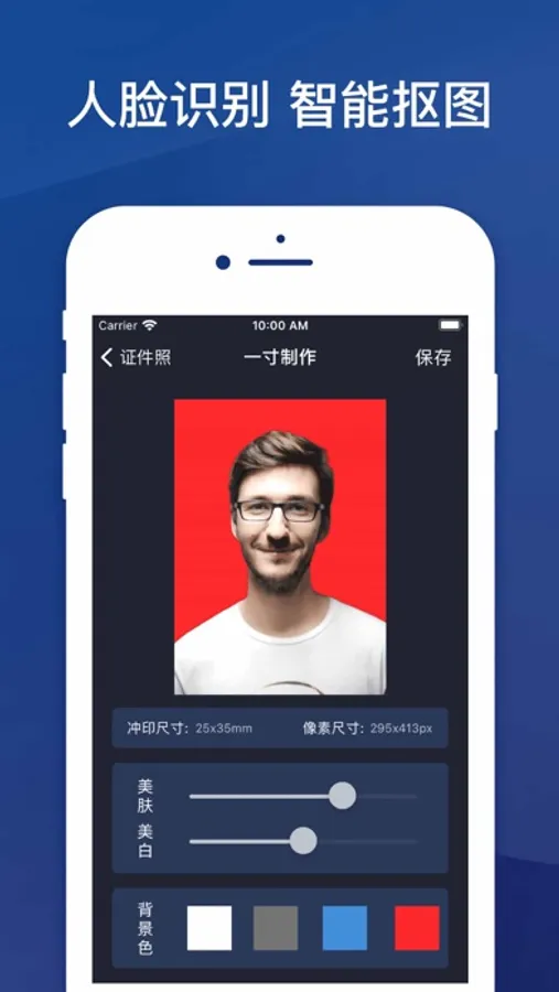 证件照制作,多种尺寸挑选,背景随心切换,还有一键美颜,给自己一个美好印象