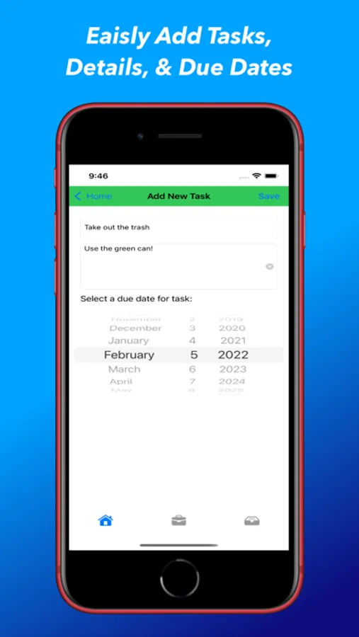 We all have a million things we need to do. Keep track of your to do lists for home, to do list for work, and task lists for anything else. Easily manage your daily to do list tasks with confidence! Keep track of what tasks need done today, and easily add new tasks to your to do list. Need a little more space to addd some details to your task? No problem! Simply add the details when you create the task. You can view the details by tapping on the to do list task. Once you complete a task simply delete it from you list with ease.