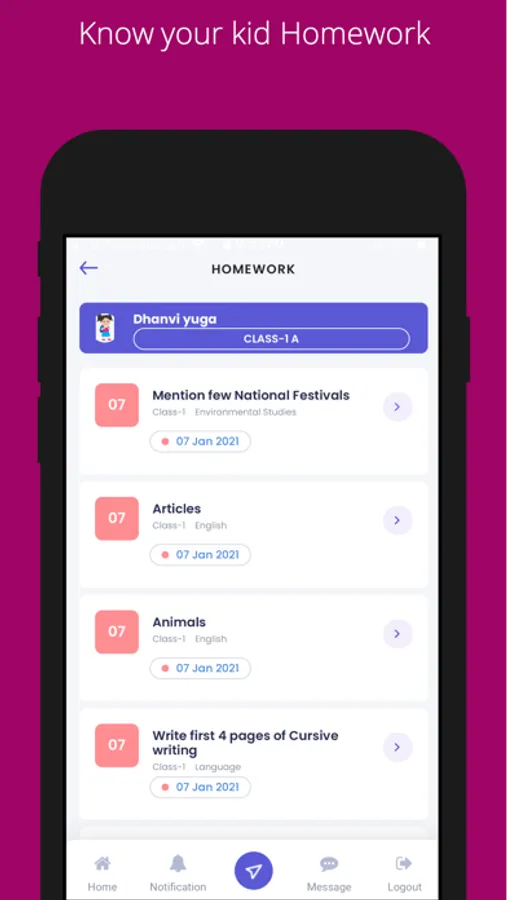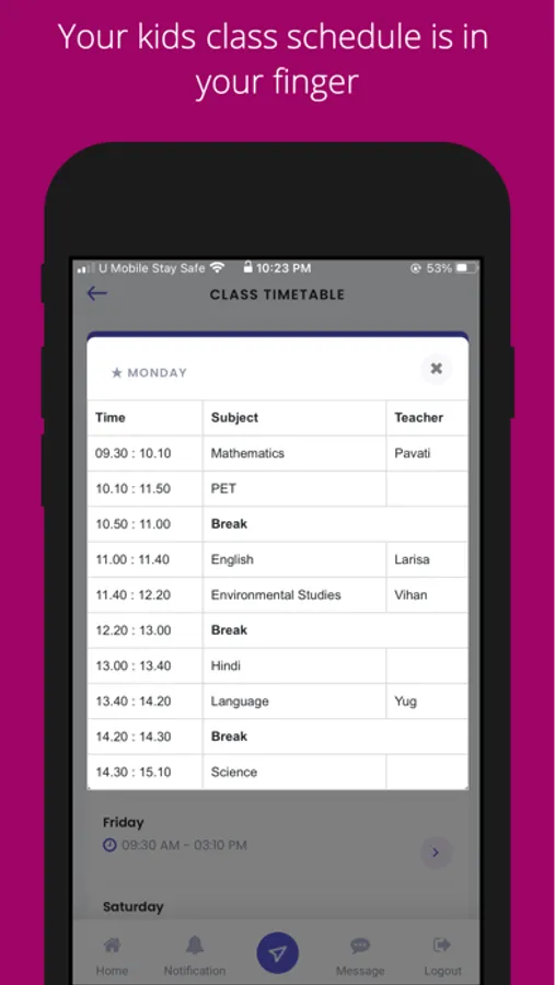 * Track school activities namely, Homework, Online Class, Overall *Performance of class and students.