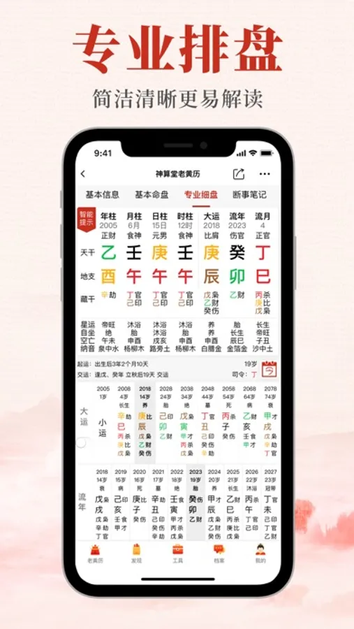 神算堂老黄历app的初衷是给用户提供一个极简单、无广告的的应用,方便用户查看农历(阴历)、公历(阳历)日期以及节假日等需求,还能通过黄历查看中国传统的周易、八卦、风水信息等,给用户的极致体验,就是我们最大的动力!
