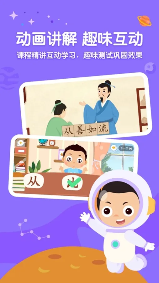 拒绝填鸭式教学!拒绝硬性记忆!按自然、植物等主题分篇,以情境融入课程,并加入趣味国学知识。有学有练,及时检测学习效果。