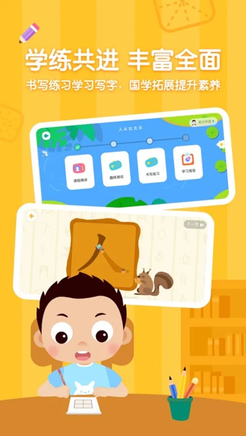2.科学设置课程板块,课程精讲+趣味测试+书写练习相结合