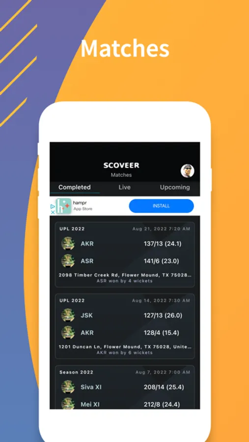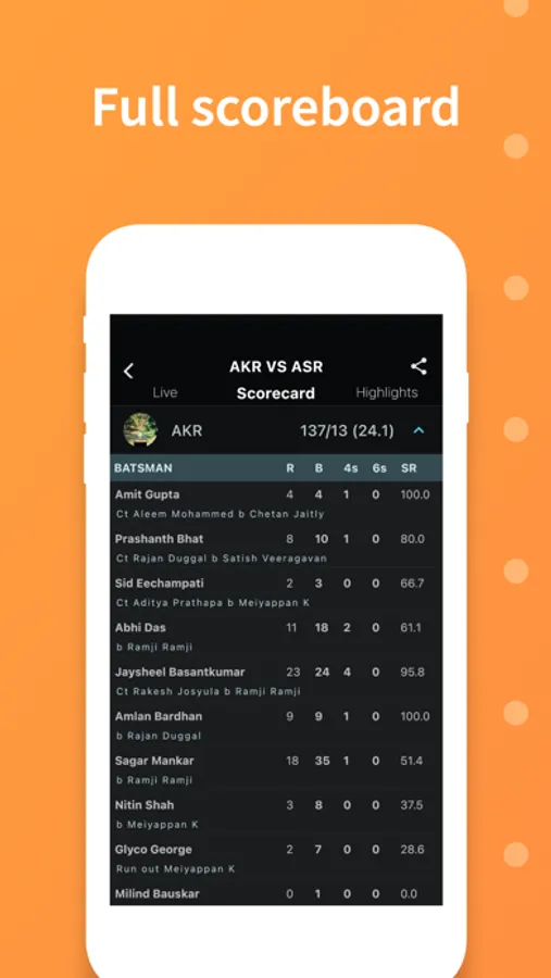 Live score for own matches, full score card, commentary and intuitive scorer capabilities