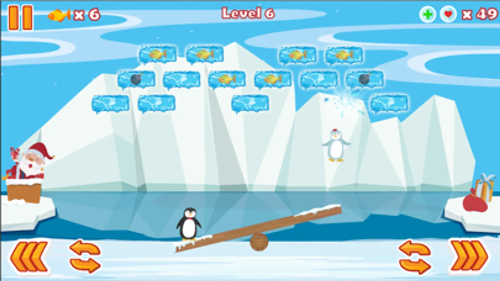 > Bombs help clear ice blocks.
