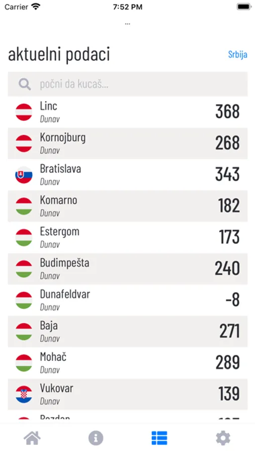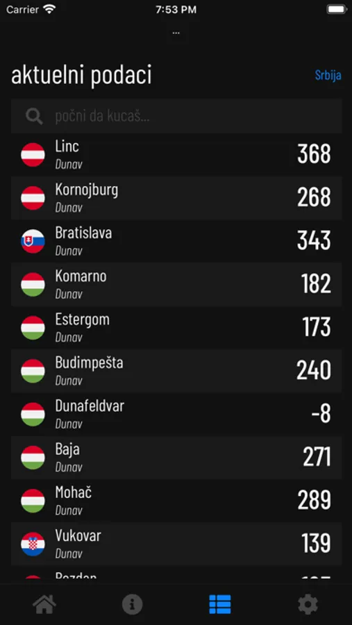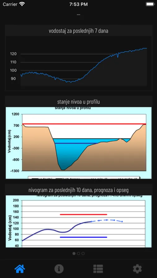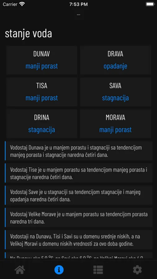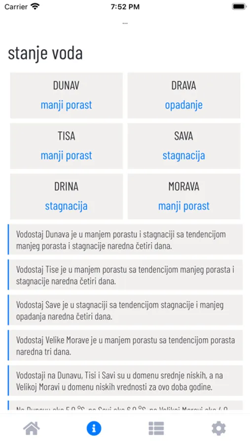 - vodostaj za tekući dan za Dunav, Tisu, Savu i Moravu