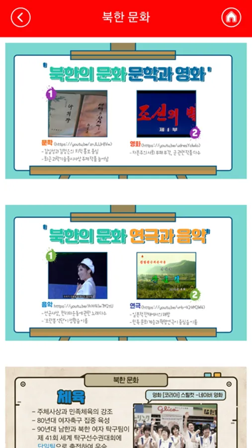 북한에 대한 이해와 통일에 관심이 있는 전국민 누구나 활용할 수 있는 교육용 어플리케이션입니다.