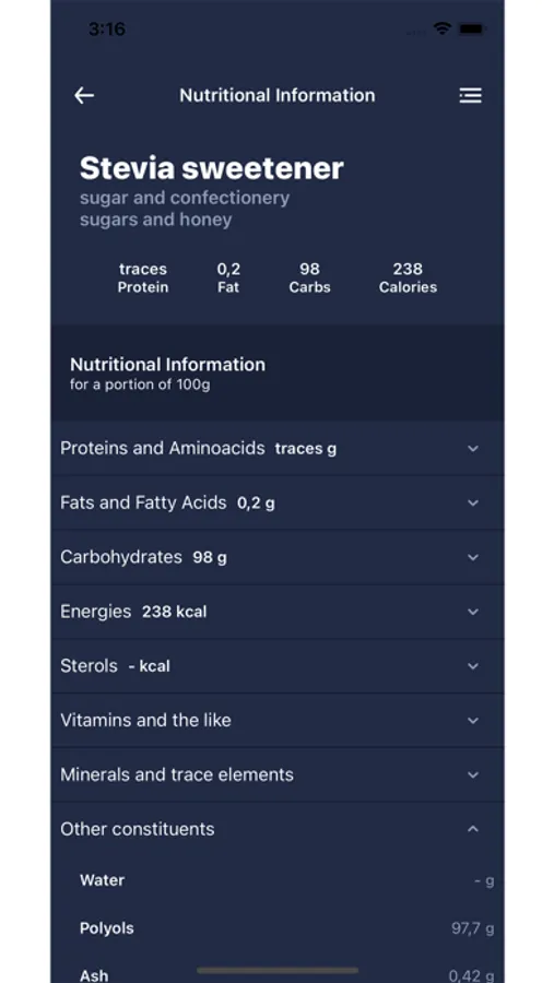With Nutritive, visualize at a glance the nutritional values and indices of thousands of foods !