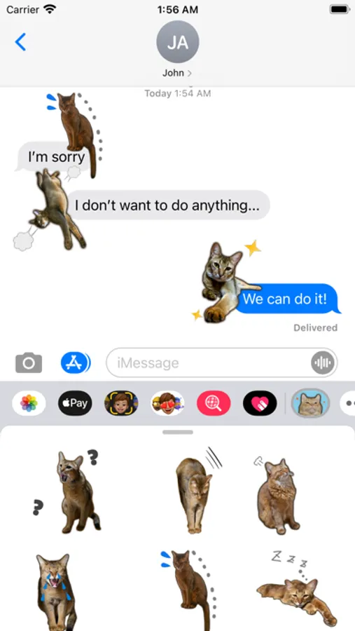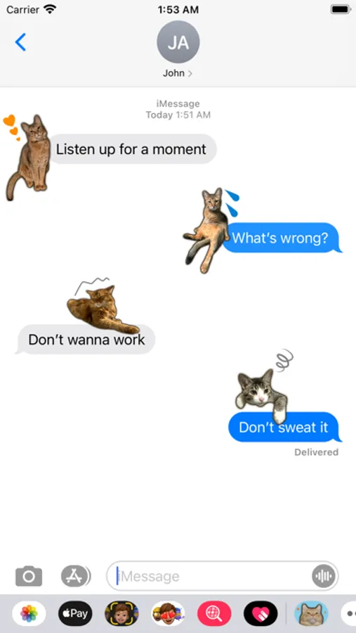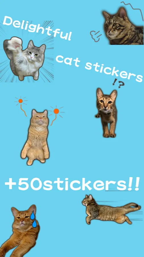 Express yourself by decorating your messages with 50 brilliant cat stickers, all in one pack.