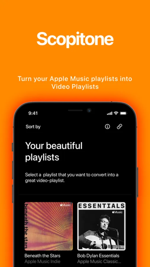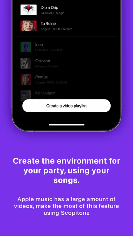 That is why we created Scopitone. Scopitone lets you create video playlists from your beautiful ones. You just select the playlist you want to convert, it searches the video for every song in the playlist, and then it lets you generate the playlist.
