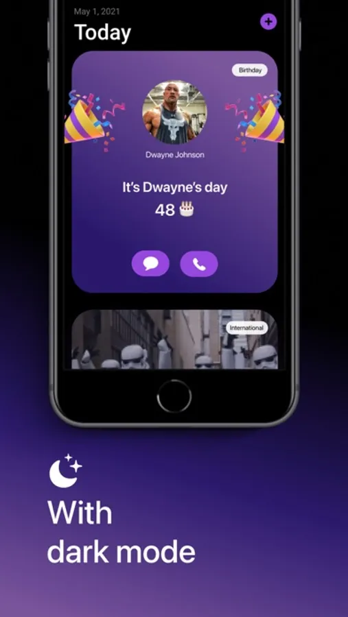 · Start - Connect to your Contacts App to import existing birthdays automatically.