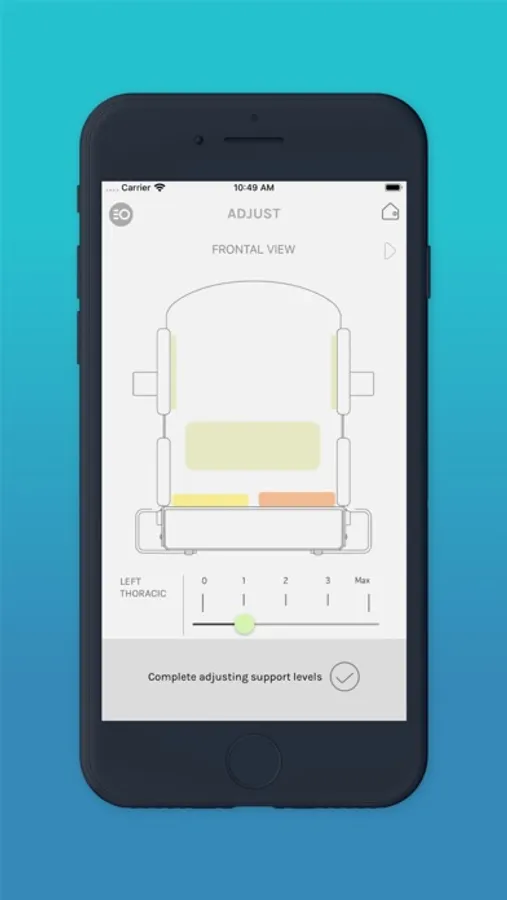 The PS app features a visual adjustment menu that displays pressure levels within each air support. Once set up the inflation level best for your postural needs, you can save the settings for fast recall the next time you use the PS device. Our key feature, Responsive mode, triggers automated postural management that adjusts air support levels in real time and keeps you in a neutral seated position. You can book appointments with Physiotherapists or Occupational therapists within the app to enable clinical assessment and adjustment to your Aergo PS support settings.
