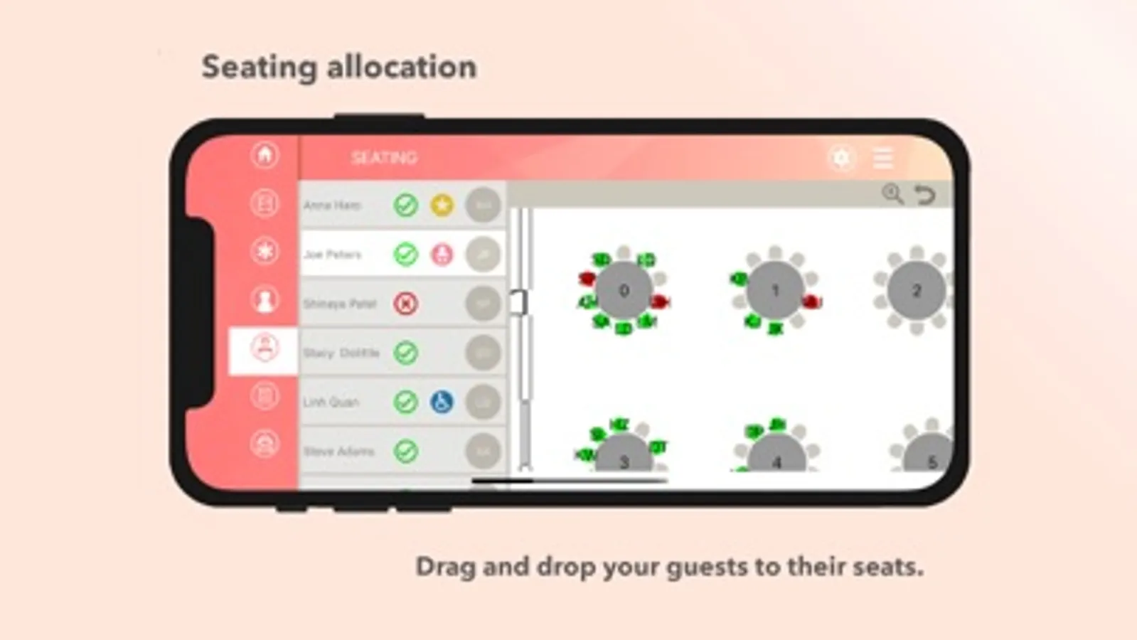 *Guest management - Add guests to your list via your contacts on your iPhone or iPad then manage their RSVP status, catering and seating requirements.