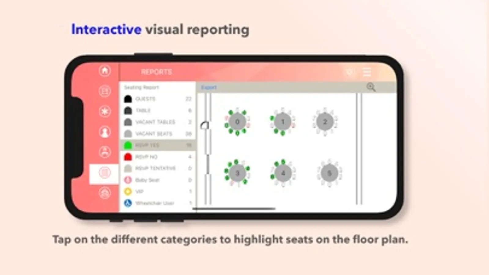 *Visual reporting - Interactive visual reporting of seating and catering needs of your guest.