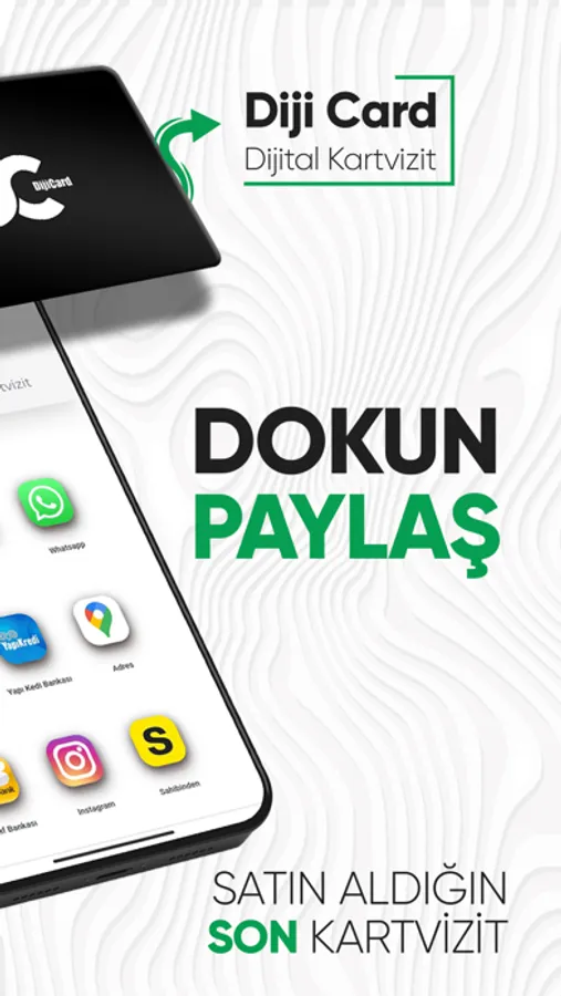 NFC (Yakın Alan İletişimi) teknolojisini kullanan Diji Card, ona yakın (0 ila 3 inç arasında) tutulan telefonlarla iletişim kurabilir. Diji Card, telefona dokunduğunuzda paylaşmayı seçtiğiniz tüm bilgileri içeren Diji Card profilinizi açan bir bildirim gönderir!