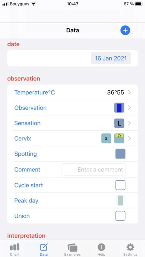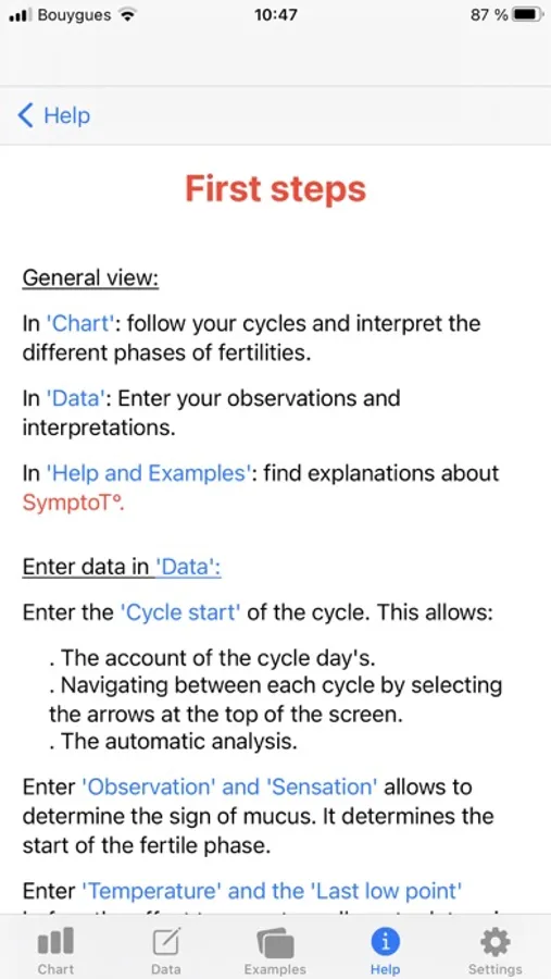 In the help, you will find explanations on how to make the observations and what are the rules of interpretation to determine the fertile and infertile phases.