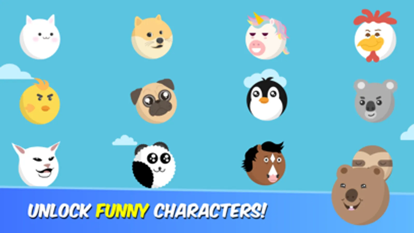 Unlock funny characters with unique expression and funny sounds! Start the funny animal game with a naughty pig and proceed with other animals all different from each other. Make your obstacle course survival adventure worth the while by exploring new funny animal noises coming from the disgusted cat, the naughty dog and the adorable penguin! New naughty animals will be added constantlyto make more funny sounds in the future.