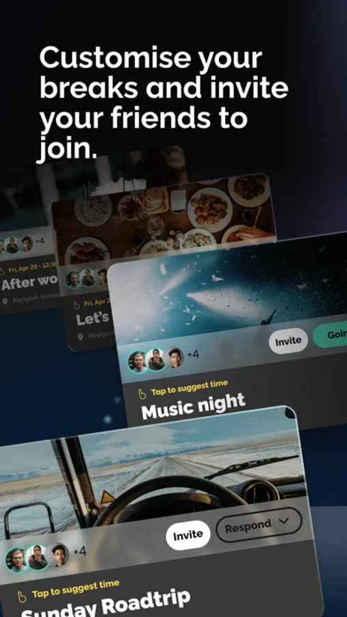 - Breaks are casual events where you can easily invite friends, and decide on the time and location together in one place. Want to grab drinks after work? Invite your friends, see who’s available, and go have a good time.
