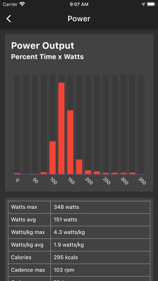 • Statistics include speed, cadence, heart rate, power (watts) and more.