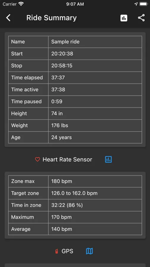 • GPS - No sensors? Use the GPS in your phone to track speed, distance and elevation.