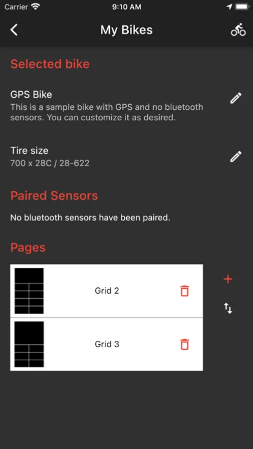 • Save separate sensor configurations for multiple bikes.