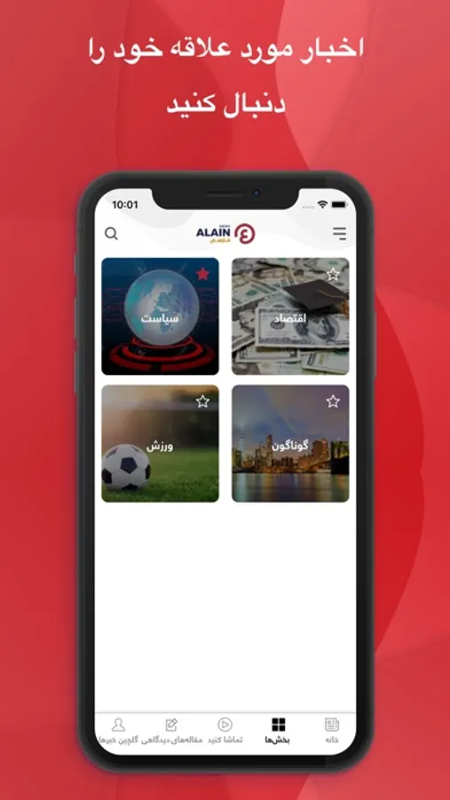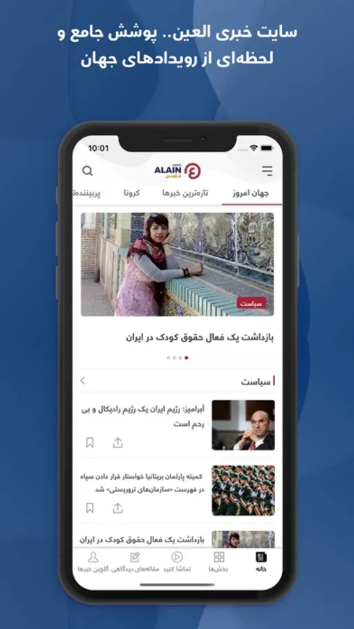 اپلیکیشن جدید سایت خبری العین خدمات زیر را ارائه میدهد: