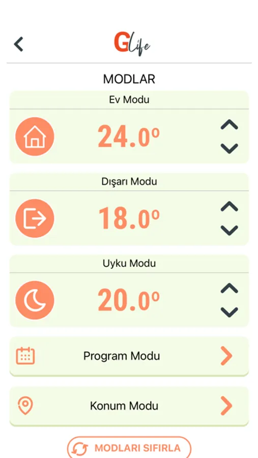 - Akıllı oda termostatınızın 6 farklı modu ile durumunuza en uygun modu seçebilir ve evinizin sıcaklığını yönetebilirsiniz. (Ev Modu - Uyku Modu - Dışarı Modu - Program Modu - Konum Modu - Manuel Modu)