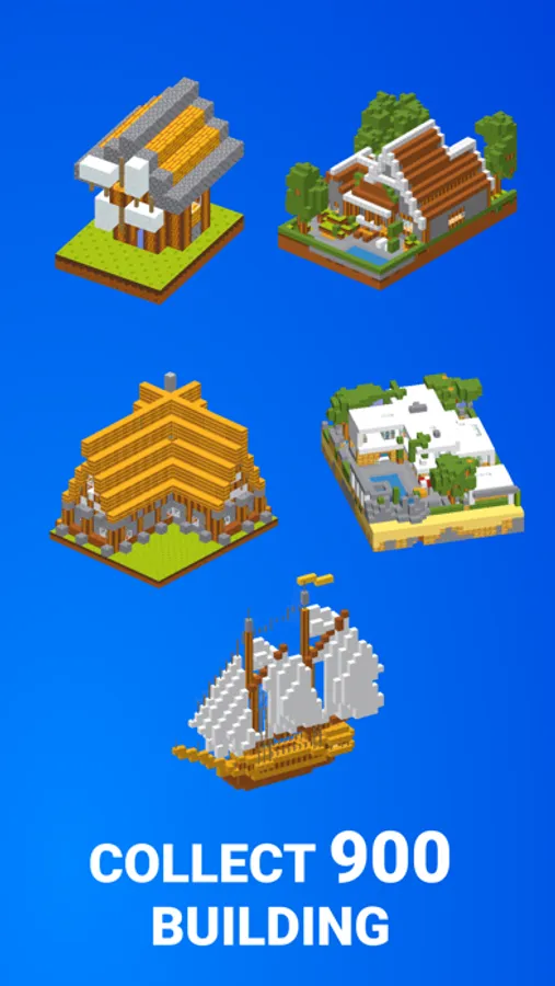 Each level is a unique building. Some of the levels very small, but some contain more than 5000 blocks. Levels have certain order - it means that in the beginning, you will build easy levels, then medium, and then hard.