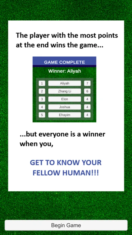 Throughout the game you will share past experiences and tales that will help you get to know other players. In many cases, players develop a deeper respect and understanding of one another.