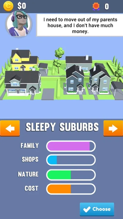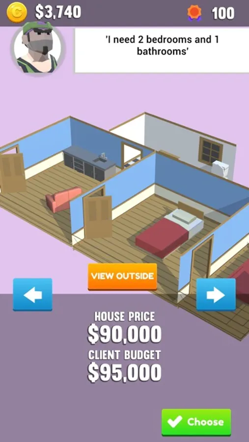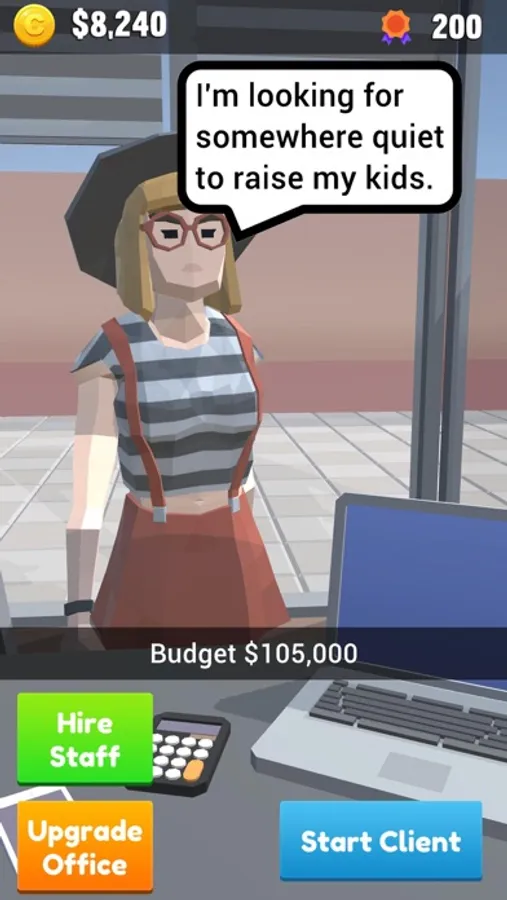 Explore the areas of the city and then explore in all the houses, looking for the perfect houses to make your clients love you!