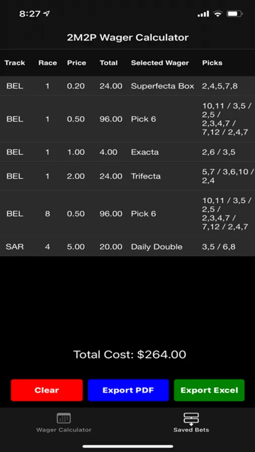 Ability to save and export your wager calculations to PDF and Excel file to share with family and friends!