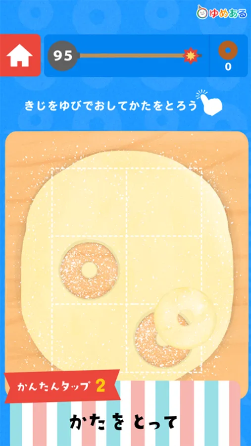 ドーナツ作りの体験をしながら、爽快感のあるミニゲームを遊べます。