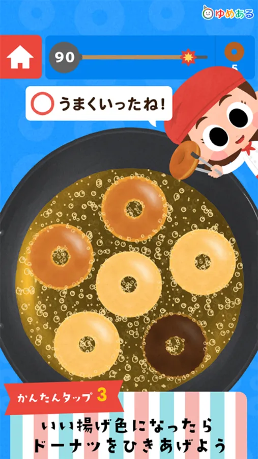 操作はタイミングよくタップするだけなので、誰でも簡単に甘くておいしいドーナツをたくさん作れます。