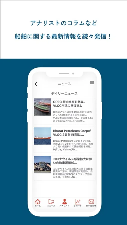 弊社アナリストや、外部の見識者が市場動向を分析し、レポート形式で配信致します。海運、経済、環境、政治など、多角的な視点から市場を読み取り、今後の動向を読み取る「目」を提供します。