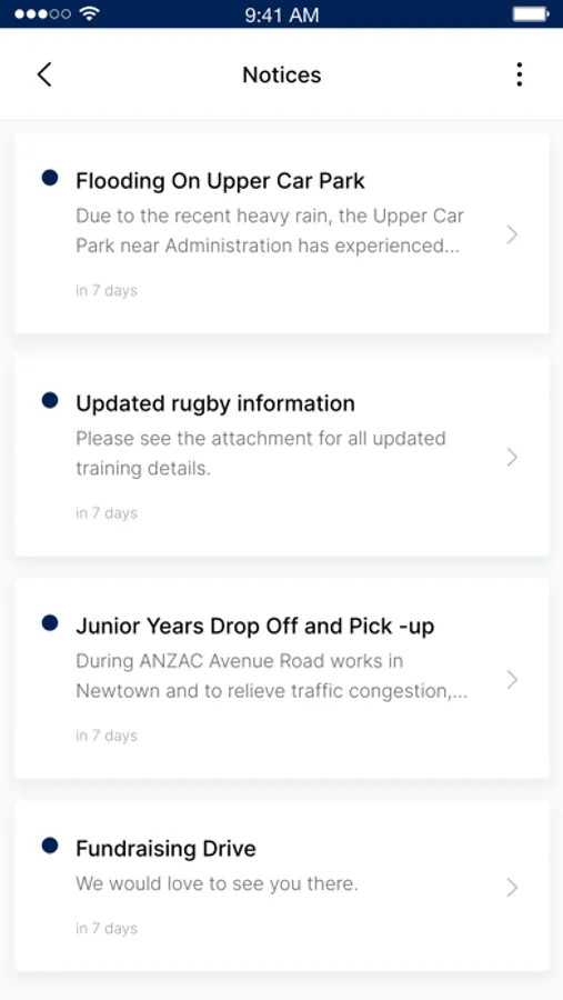 - Activities: View Sport and other Cocurricular schedules, team lists and change or cancellation alerts.