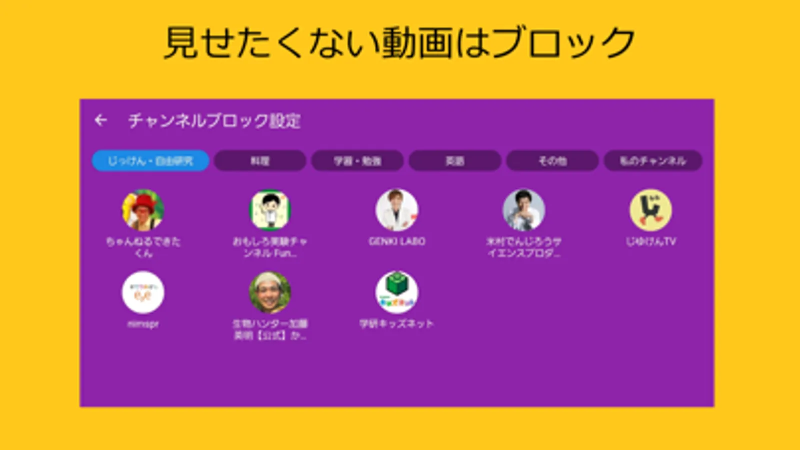 もし、お子様が不適切な動画を視聴していた場合は、再び視聴できないようにブロックすることができます。