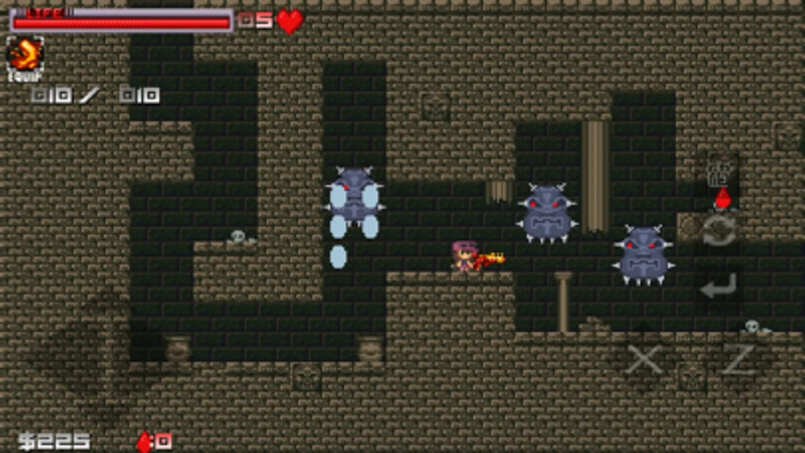 In this game you are a girl who have to save your sister from the gun world, you will explore a big world full of monster, bosses, secret items, guns, and many other things. This will give you hours of fun and challenge, Are you ready for an awesome adventure?