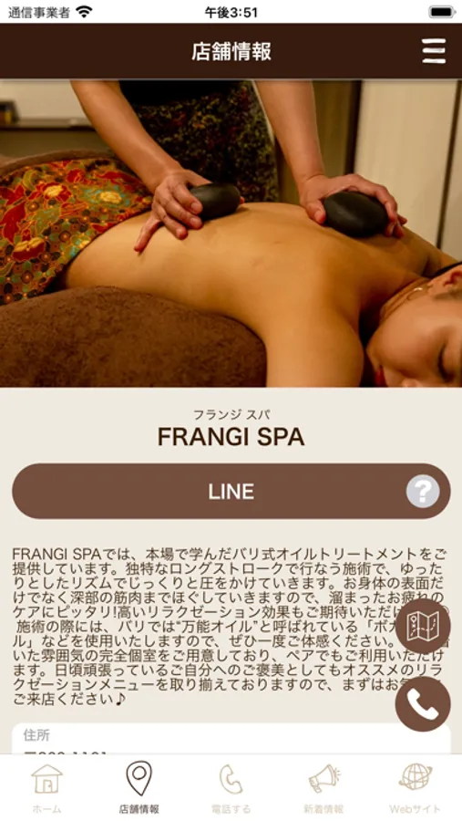 店舗のマップが表示され、地図アプリとも連携しているので、初めてのご来店の時も簡単に見つけることができます。