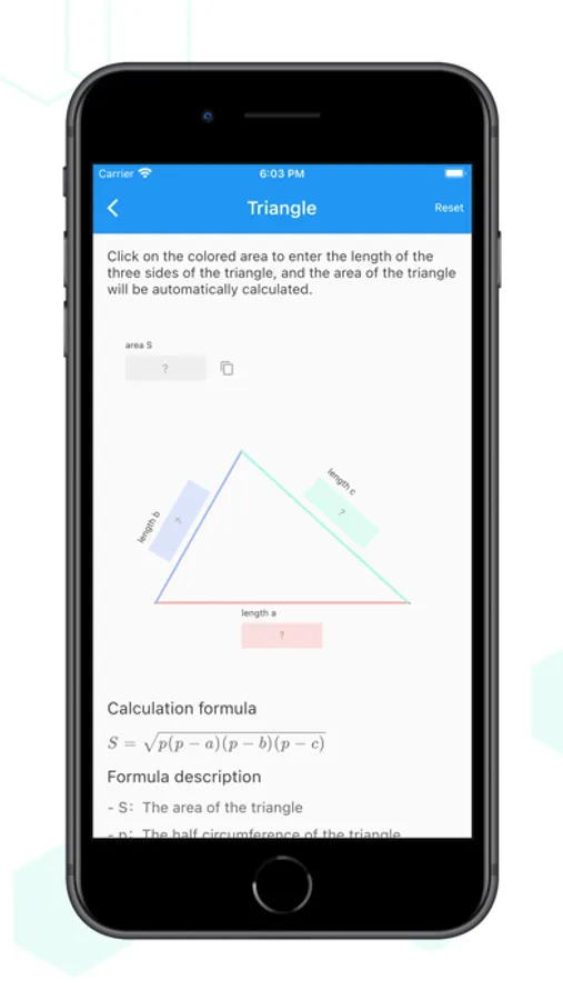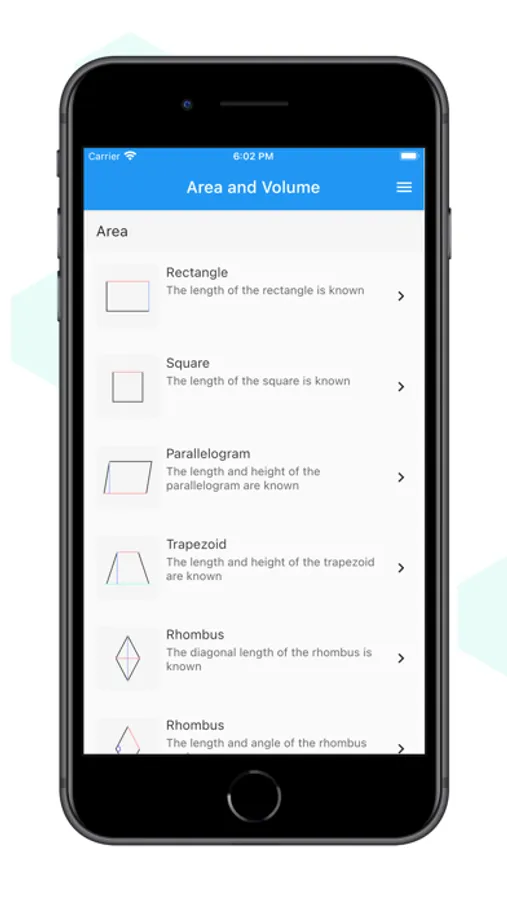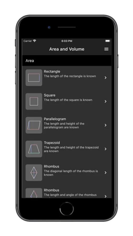 When using the area and volume software, you only need to select different shapes through the homepage, and enter the corresponding length and angle data in the input box as prompted in the details. If the conditions are met, the area and volume will be calculated and calculated in real time. Displayed in the corresponding position, and the calculation result can be quickly copied to the clipboard and pasted to other locations at any time. Area and volume software is not only helpful for junior high school students who are studying mathematics, but also for software developers, mechanical engineers, dynamics engineers and surveyors, it will also be a tool to reduce repetitive calculations. Our goal is to allow everyone to experience the convenience brought by technology through simple operations.