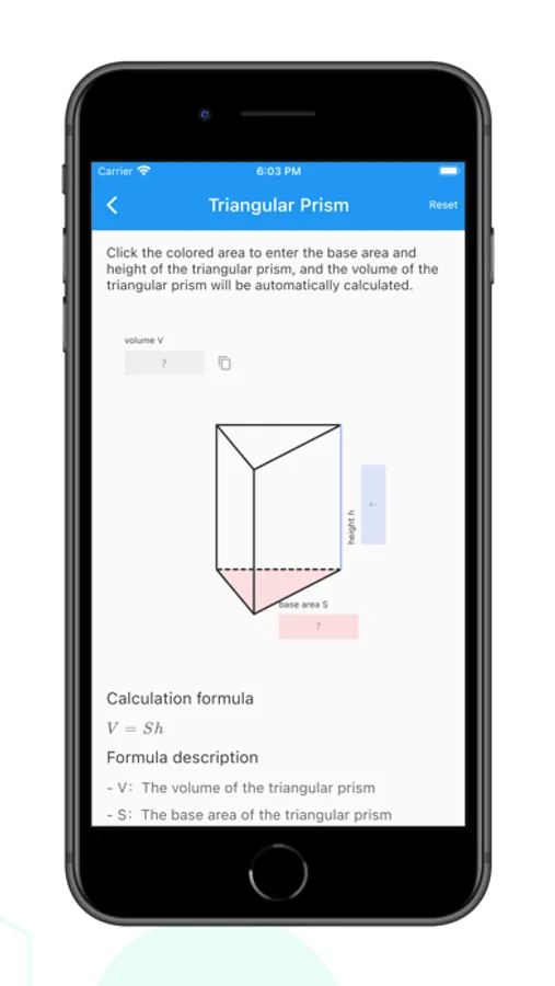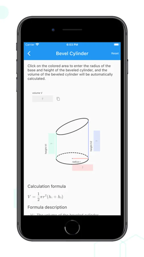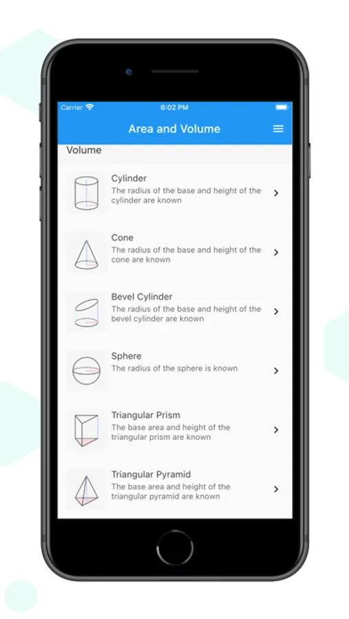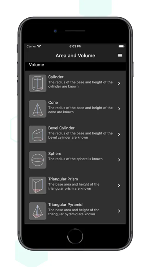The area and volume software has a large number of simple geometric models built in, and the unknown can be easily obtained by given different known data. The shapes that can be used to calculate the area include common rectangles, triangles, ellipses, sectors, etc., which can be used for calculations The shape of the volume includes common cylinders, cones, prisms, spheres, etc.
