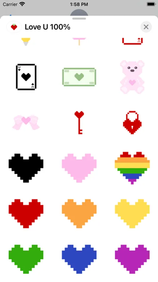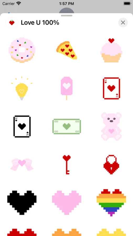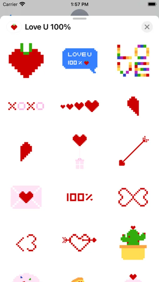 Love U 100% is a love symbol sticker pack. It's perfect for expressing every moment you feel love and want to be loved.