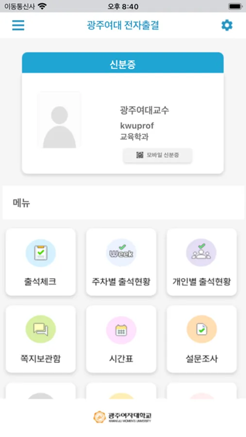 광주여자대학교용 전자출결 및 2차 인증 앱입니다