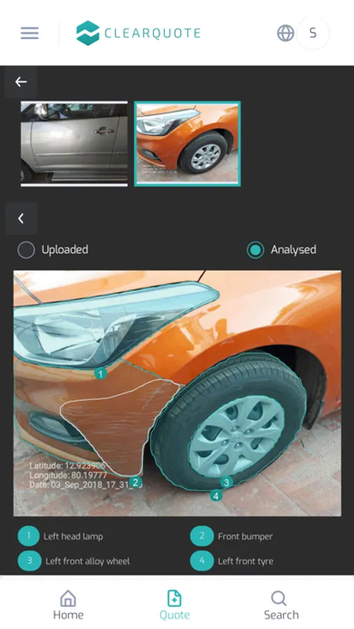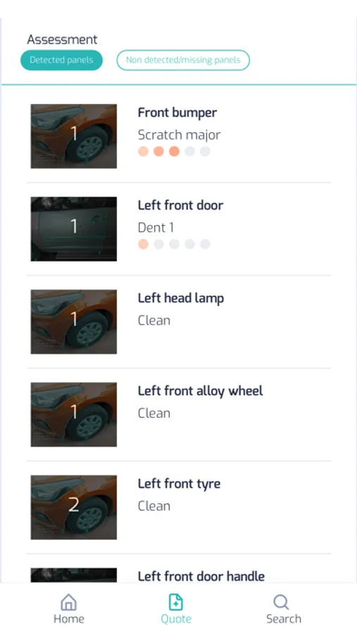 ClearQuote app can help scan a car for damages with a smartphone in less than a minute using AI. Intuitive user experience to capture images or a video of a car using the app and ClearQuote will automatically assess damages - grade and location on the car.