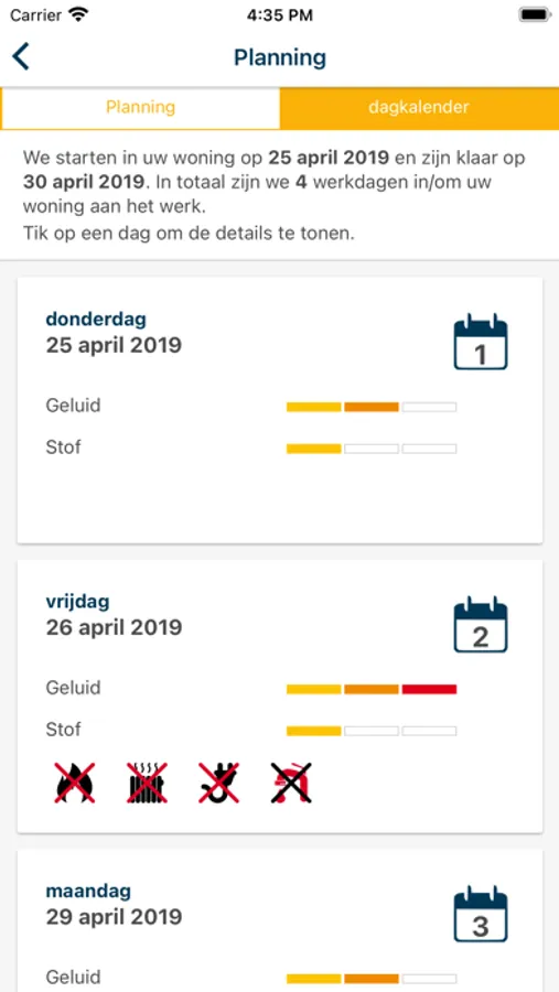 Weg met het papieren boekje dat u kwijt kunt raken. Nu heeft u alle informatie over uw renovatie of groot onderhoud vertrouwd bij u op de telefoon of tablet. Blader bijvoorbeeld door de scheurkalender om te zien wat er gaat gebeuren, wat u kunt doen om het de mensen van de bouw gemakkelijker te maken of welke overlast u kunt verwachten.