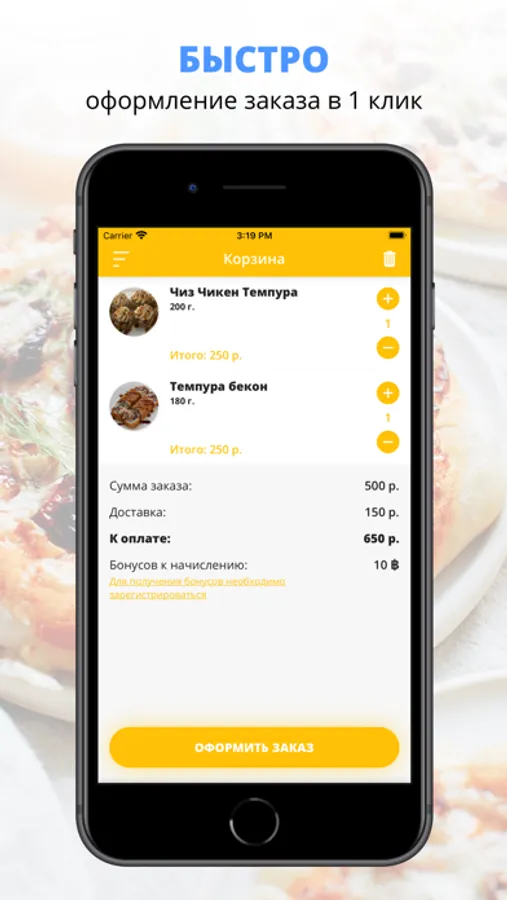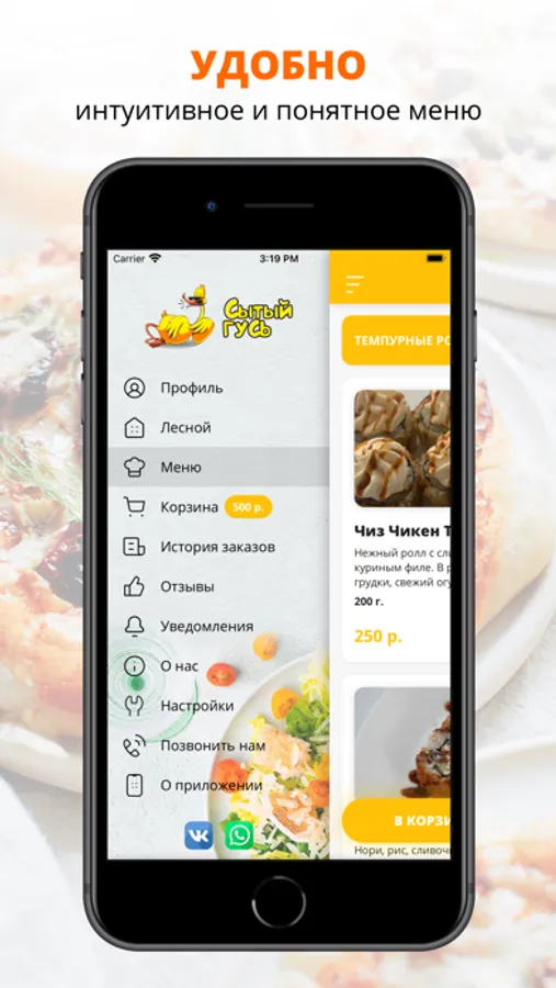 Скачивайте наше приложение, оформляйте заказ и наслаждайтесь любимой едой, где бы Вы ни были! Приятного аппетита!