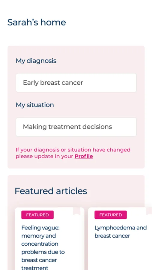Find up-to-date, reliable information tailored to your changing needs during your breast cancer experience.