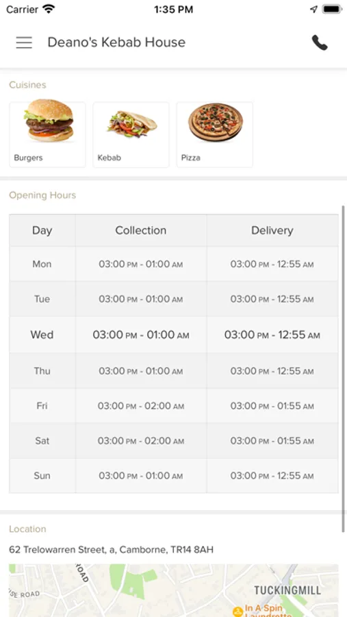 Order food online in Camborne! It's so easy to use, fast and convenient. Try our new, online app which contains our entire takeaway menu. The Deano's Kebab House is located in Camborne. You can now order online, all your favourite dishes and many more delicious options, and have them delivered straight to your door in no time at all. Here at Deano's Kebab House we are constantly striving to improve our service and quality in order to give our customers the very best experience. As a result, we are finally proud to unveil and introduce our latest improvement, our new online ordering website! You can now relax at home and order your favourite, freshly prepared meals from Deano's Kebab House