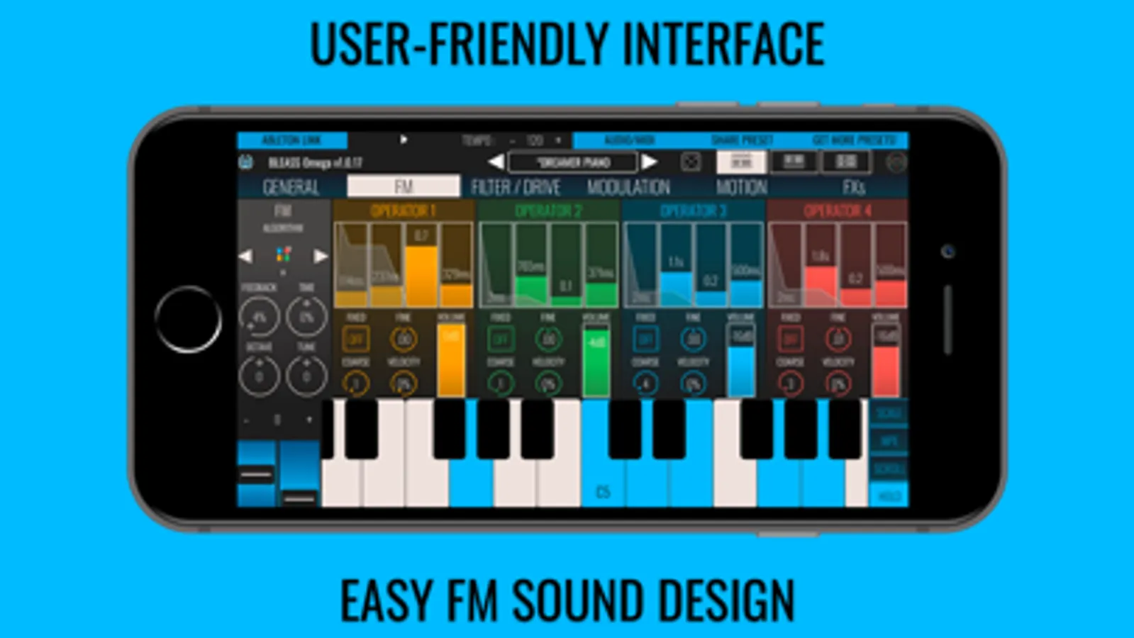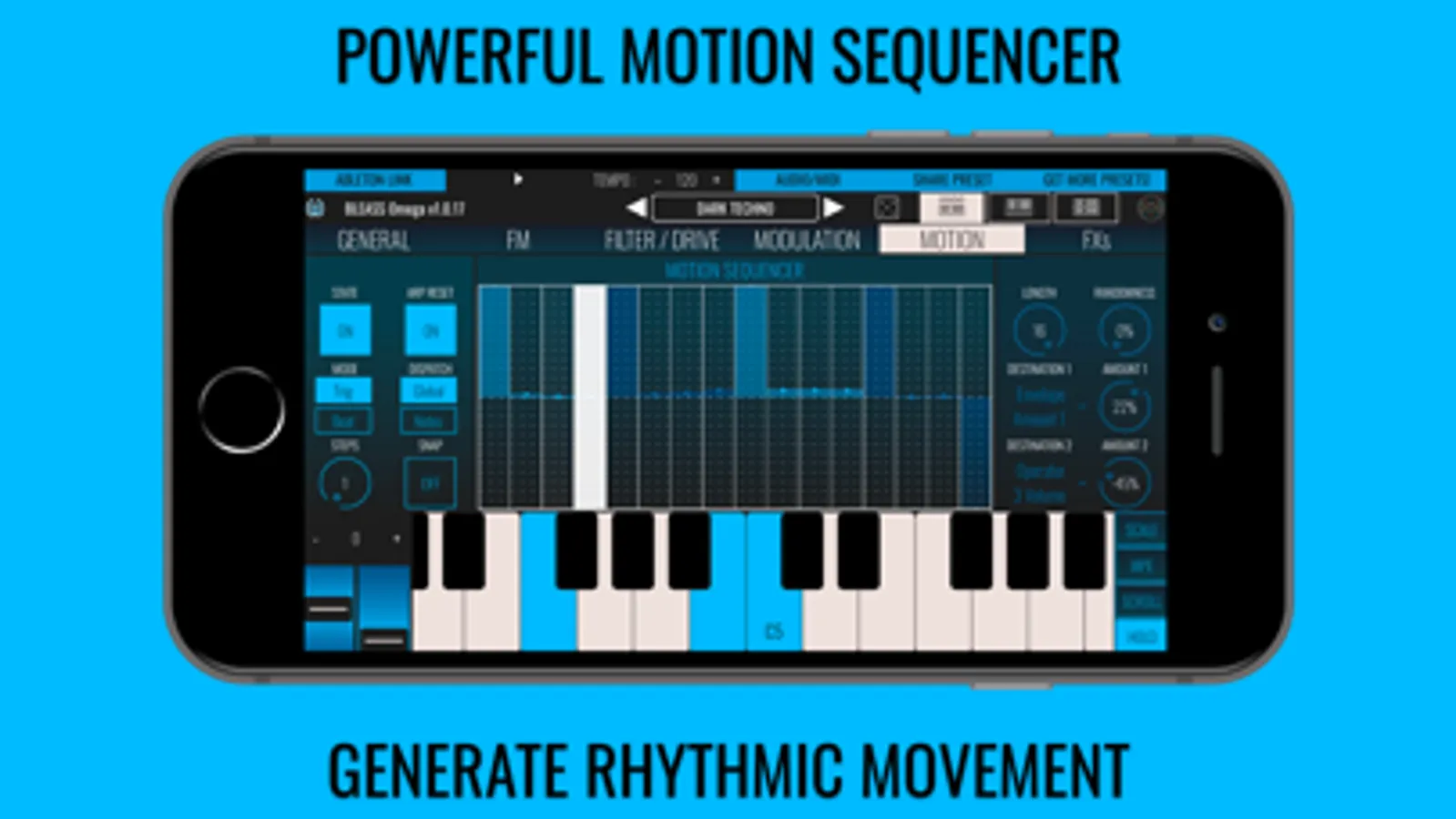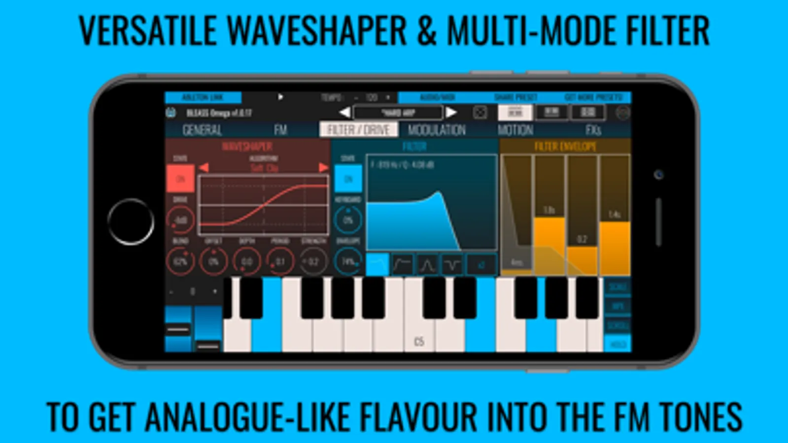 The four FM operators that sit at the heart of BLEASS Omega are edited simultaneously from within a single screen, with all operator envelopes and controls available to the touch of your finger. This amazingly user-friendly approach makes light work of sound editing, and encourages experimentation and exploration in a way no other FM synth can achieve.