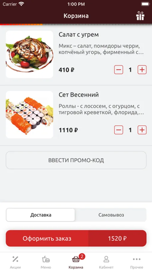 Мы заботимся о вас, так как знаем настоящую цену времени и хорошему настроению. Наши блюда способны сделать даже дождливый день солнечным, придать нотки свежести невероятными ароматами и подарить истинное удовольствие от необычных вкусовых ноток.